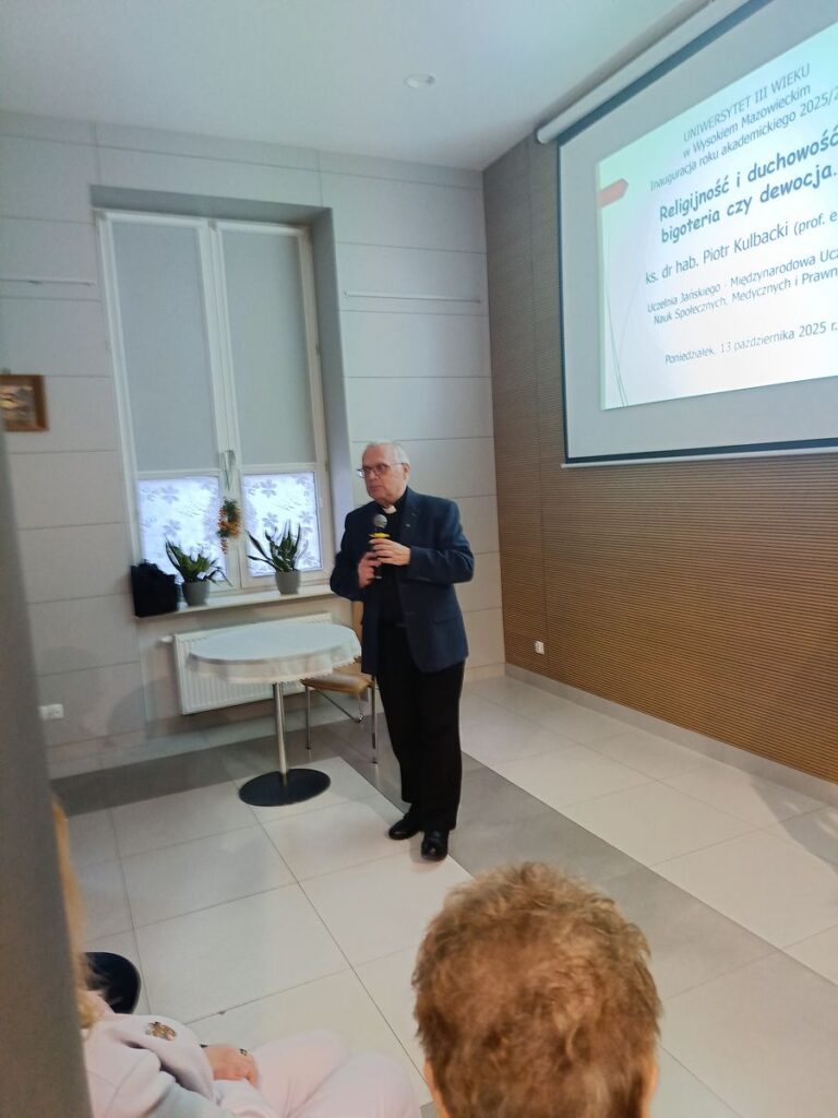 13.10.2025 r. Inaugurację XXXIV semestru w Uniwersytecie Trzeciego Wieku w Wysokiem Mazowieckiem rozpoczął ks. prof. dr ha. Piotr Kulbacki z Uczelni Jańskiego w Łomży wykładem pt: ‘ Religijność, duchowość”. Bigoteria i dewocja”.